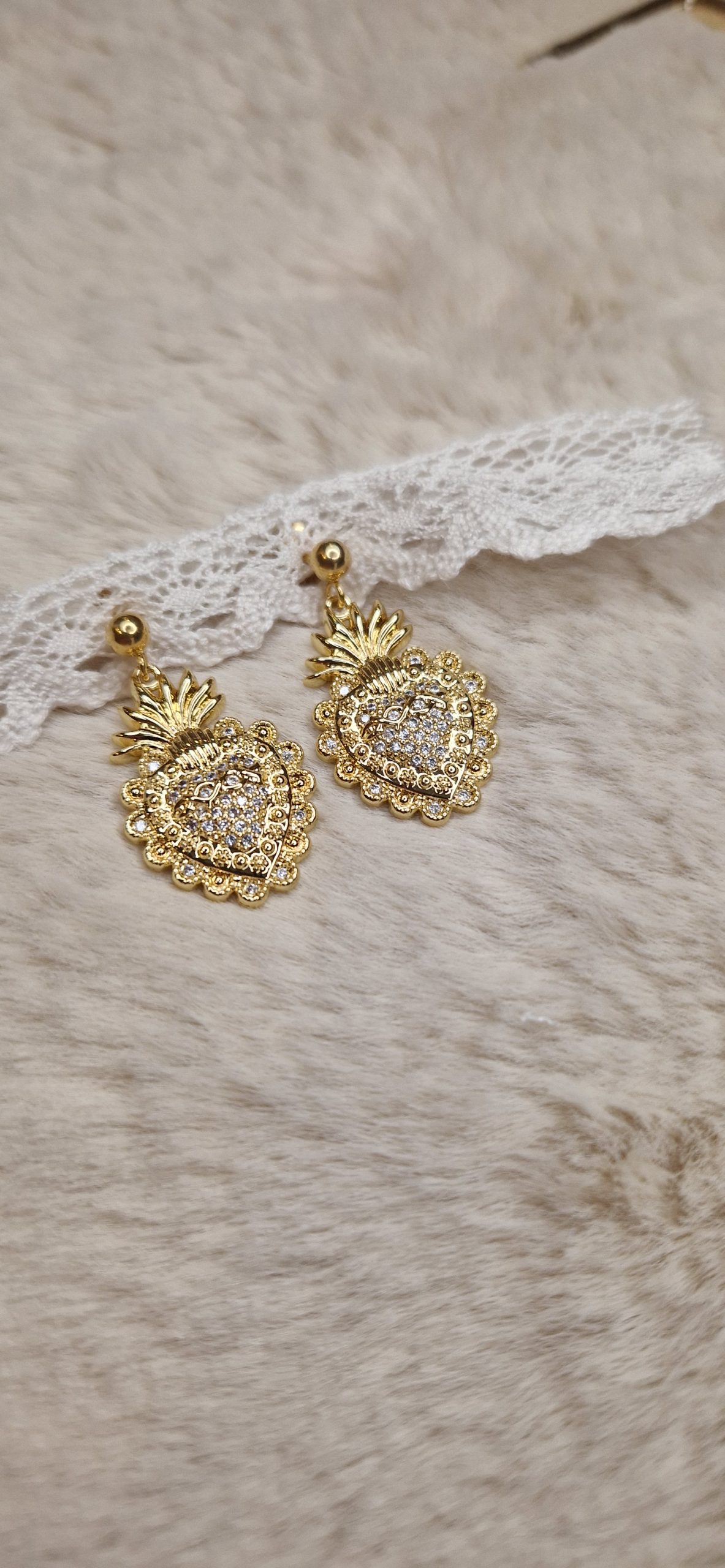 Boucles d’oreilles cœur en strass.